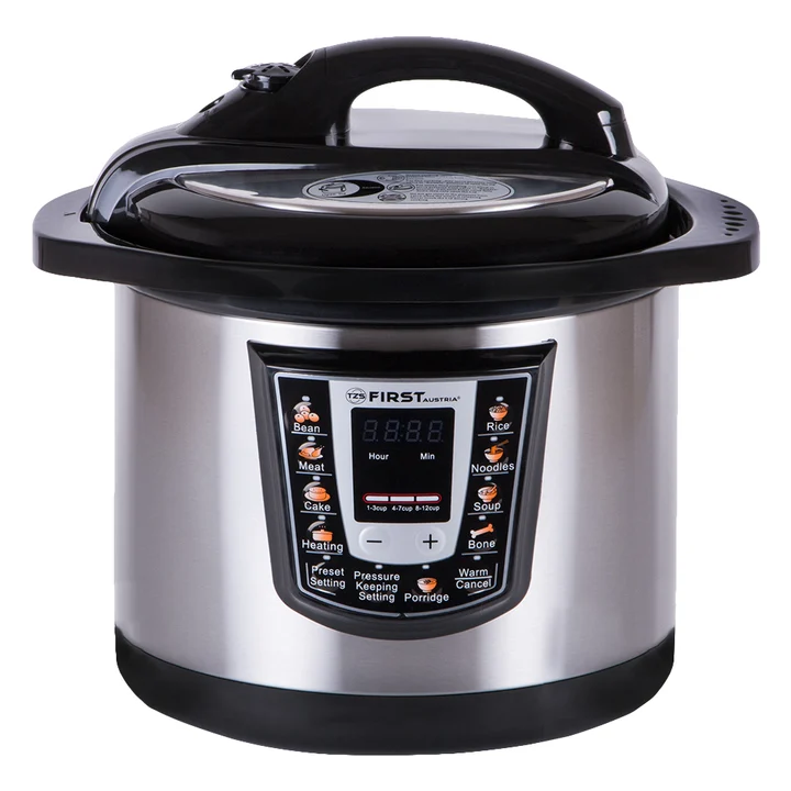 Schnellkochtopf, Dampfgarer + Reiskocher, Silber, Schwarz