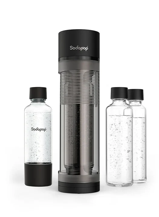 Wassersprudler Logan Starterset mit CO₂-Zylinder, inkl. 2 Glasflaschen (850 & 600 ml) und 1 PET-Flasche (850 ml), Matt Schwarz, Höhe 42,6 cm