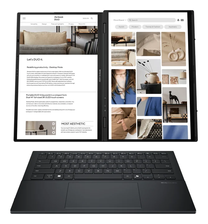 Zenbook Duo UX8406CA Laptop; 14" WUXGA 16:10 OLED Touch Display; Intel Core Ultra 9 285H; EVO Edition; 16GB RAM; 1TB SSD; Intel Arc; Win11 Home;