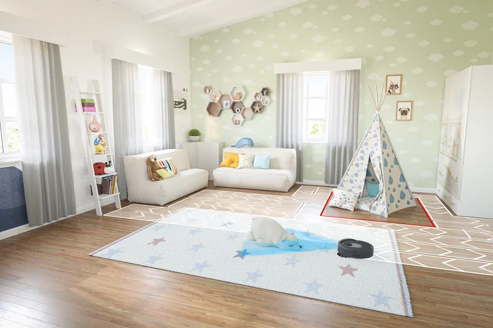 AI Saugroboter, Staubsauger-Roboter mit Anti Hair Wrap,Teppich und Hartboden, Roboterstaubsauger, 90 Min Laufzeit, manuelle und App-Steuerung, Grau,