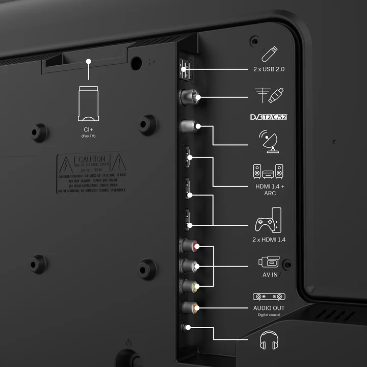61 cm (24") · 1366 x 768 Pixel · HD · DLED · DVB-CI+ · DVB-S · DVB-S2 · DVB-T · DVB-T2