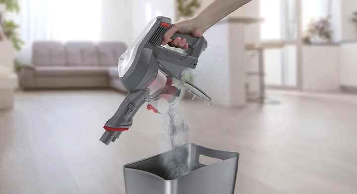 Foto: Der Hoover H-Free 100 Pets ist ein Stielstaubsauger, der von alleine stehen kann.