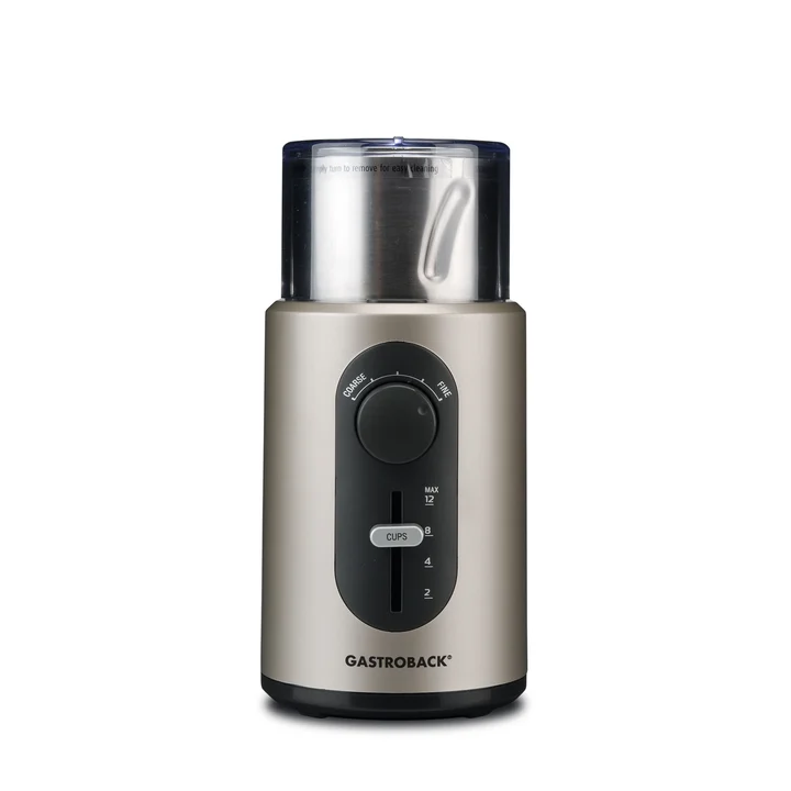 42601 Design Kaffeemühle Basic, Edelstahl-Schneidemesser-System, Mahlgradeinstellung mit 5 Feinheitsgraden von Filterkaffee bis Espresso, 18/8, Grau