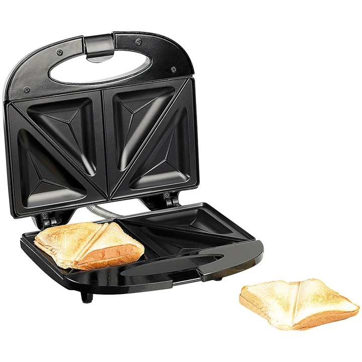Antihaft-beschichteter Sandwich-Toaster für 4 Portionen, 750 Watt, Kontaktgrill, Schwarz