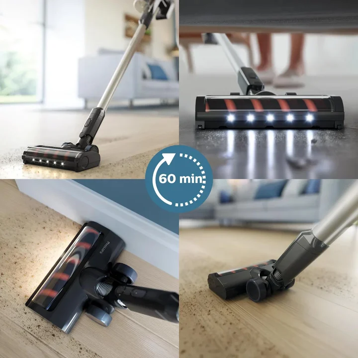 Kabelloser Staubsauger der Serie 3000, Leistungsstarke Saugleistung auf Hartböden, 60 Minuten Laufzeit, Düse mit LED-Licht, Fugen und
