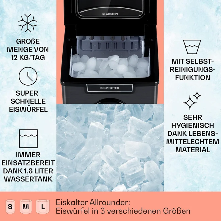 In unserem Eiswürfelmaschinen Test hat uns die Klarstein Icemeister durch ihre einfache Bedienung, aber insbesondere durch die großen und langlebigen Eiswürfel überzeugt. Die Eisproduktion dauert etwas länger als bei den anderen Geräten, das ist aber nicht sonderlich tragisch. Wenn du deine Sommerdrinks lange kühlen möchtest, empfehlen wir dir die Klarstein Icemeister.Vorteile